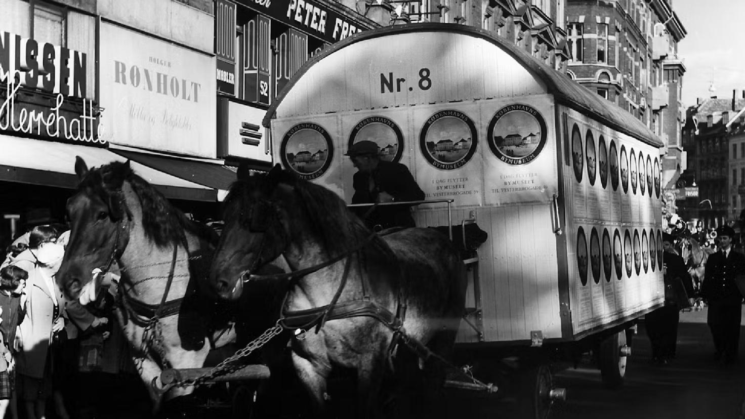 Foto: Optog i forbindelse med flytningen af museet fra rådhuset til Vesterbrogade 59 i 1956. Mogens Falk-Sørensen, Stadsarkivets Fotografiske Atelier